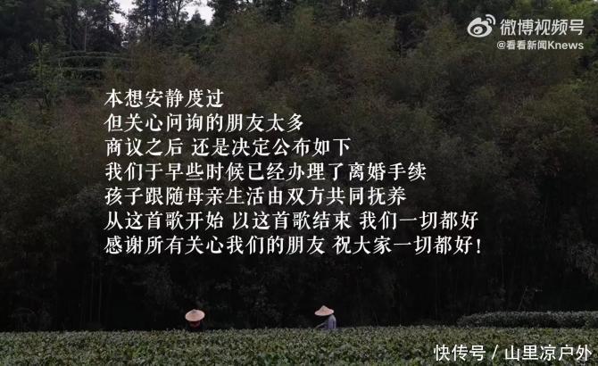 @一号立井:本想安静度过,但关心问询的朋友太多,商议之后,还是决定公布如下:我们于早些时候已经办理了离婚手续,孩子跟随母亲生活由双方共同抚养,从这首歌开始,以这首歌结束,我们一切都好!感谢所有关心我们的朋友,祝大家一切都好!